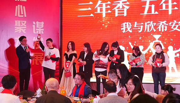 風(fēng)雨同舟,有幸榮焉。“三年香、五年醇、十年陳,我與欣希安共成長”是對兢兢業(yè)業(yè)、辛勤耕耘三年、五年、十年的老員工的嘉獎。