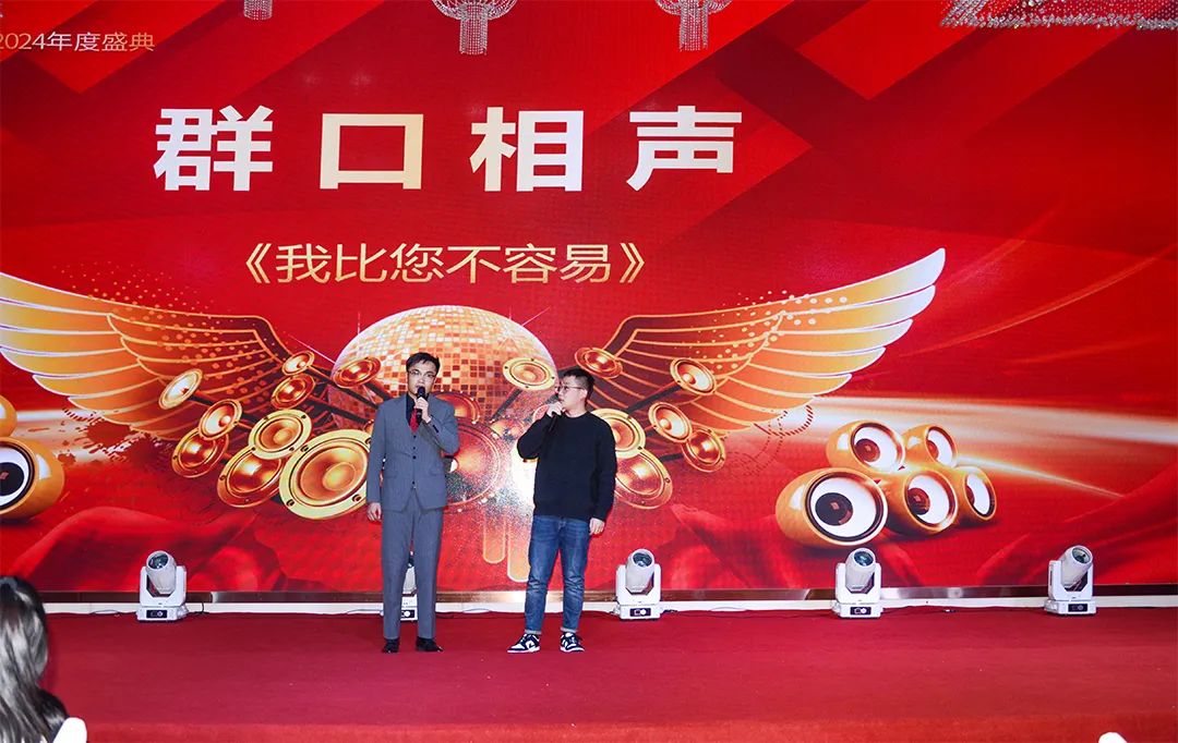 歌聲唱出我們的熱忱,擁抱明天的美好;和風(fēng)吹響新年的樂章,喚醒新歲的希望。激情昂揚(yáng)的歌曲、活力四射的舞蹈,是年會(huì)盛典中一道靚麗的風(fēng)景線,也充分體現(xiàn)了欣希安家人們的多才多藝與卓越風(fēng)采。透過歌聲傳遞著美好的祝愿,氣氛美好和諧積極向上,堪稱視覺與聽覺的雙重盛宴!