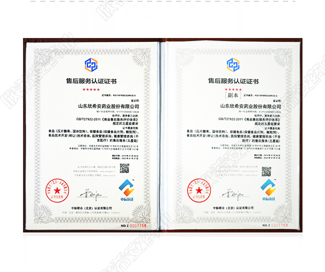 —— 山東欣希安藥業(yè)股份有限公司歷年來榮譽資質(zhì)——